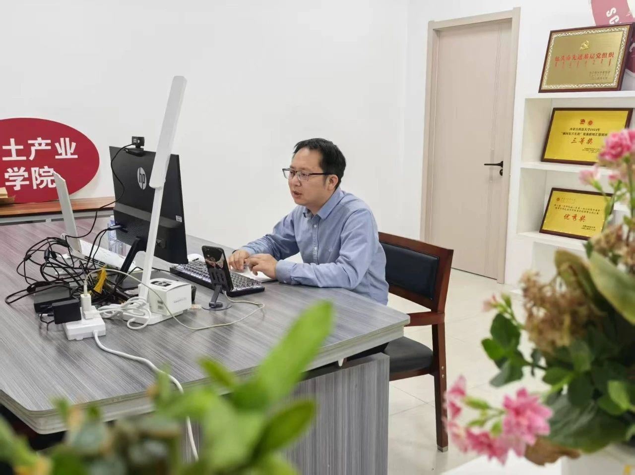 学院始终将党建工作与招生育人、就业服务深度融合,以 “党建 +” 模式打通人才培养 “入口” 与 “出口” 双环节:招生期间,由党员教师带头组建 7 支招生宣传队,充分发挥党支部战斗堡垒作用和党员先锋模范作用,从政策解读到志愿指导、从校园宣讲到线上咨询,党员教师全程冲锋在前,累计开展线上招生直播 16 场,用专业与热情架起连接考生与学院的 “连心桥”,以党建引领确保招生工作公平、公正、公开,让每一份报考信任都得到暖心回应;同时,学院领导高度重视就业工作,围绕 “稳就业、促就业” 目标多次召开就业推进会,针对不同专业就业趋势、企业用人需求、毕业生职业规划等关键问题展开专题研讨,牵头建立 “专业教师 + 党员骨干 + 企业导师” 就业指导团队,提前对接北方稀土、包钢集团等行业龙头企业搭建实习就业平台,形成 “招生 — 培养 — 就业” 闭环育人链条,以党建引领实现招生质量与就业服务双提升。